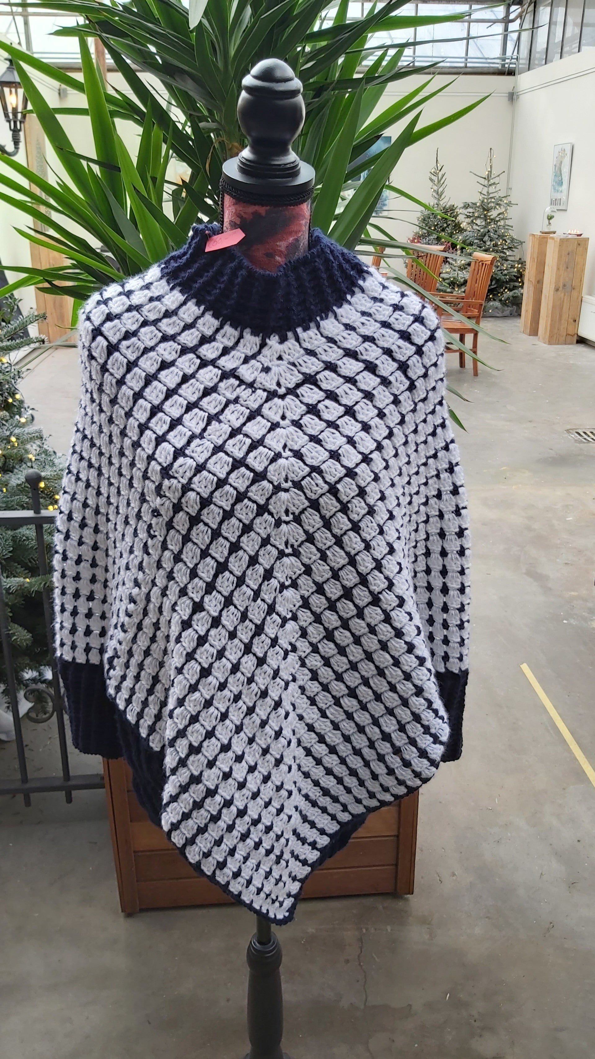 Poncho met mouw Zwart/wit